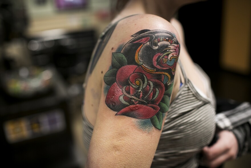 She recently got tattoos to cover her scars- a set of angel wings on each hip and a black panther to cover up the tattoos from her pimp. Glaser says she finally feels like her body is hers again.